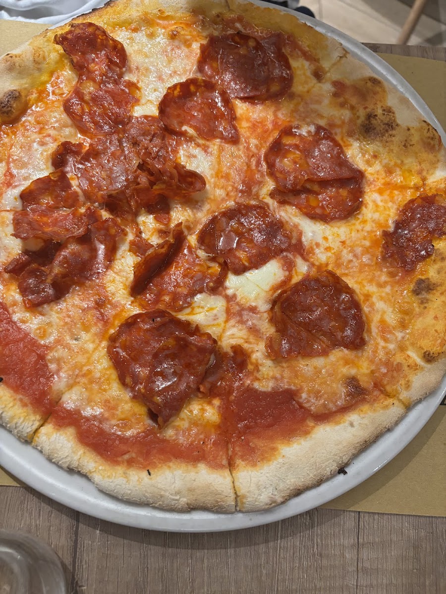 Sorry I dont have a picture, but I had a pepperoni(diavola with olives added on) very good pizza, and the owner/staff was really nice. Would come back again.